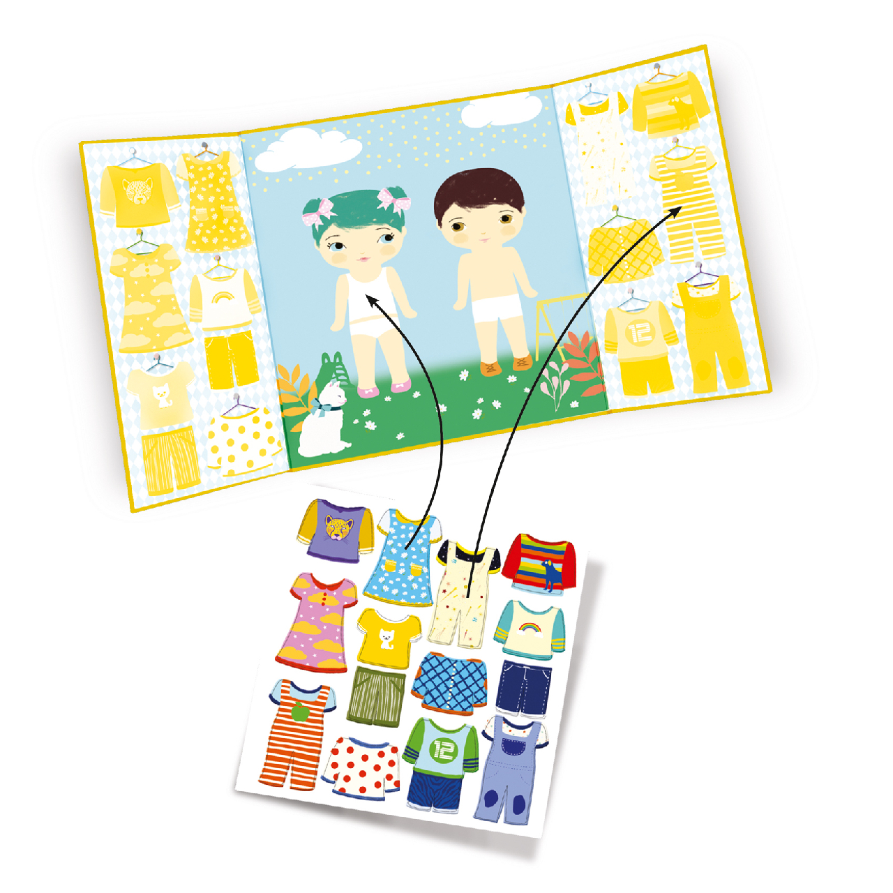 matricázók, karckép készítők/TOP 100 Djeco játékKosárba teszemMatricás foglalkoztató – Öltöztető – Clothes