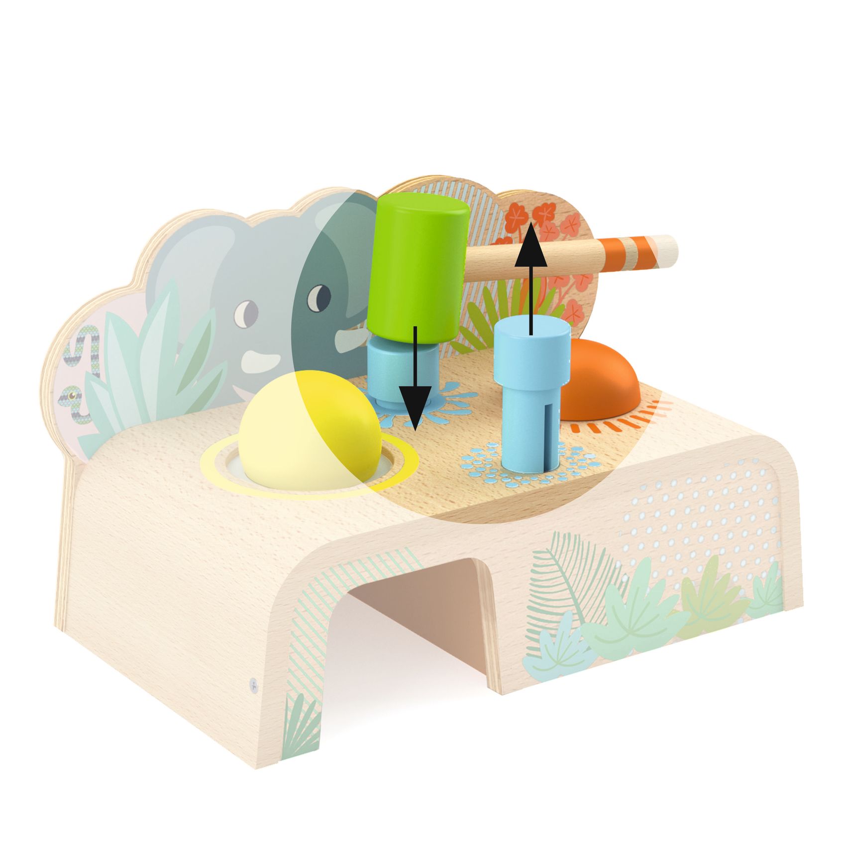 A Multitap kalapálós játékban háromféleképpen is játszhatnak a kicsik a mókás kalapáccsal.