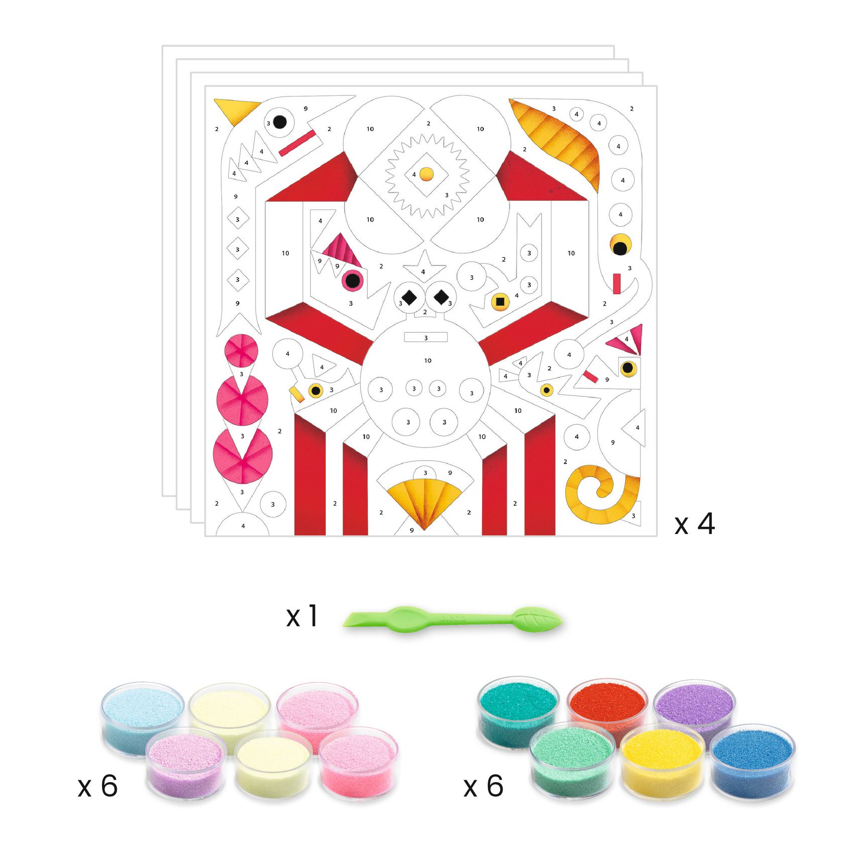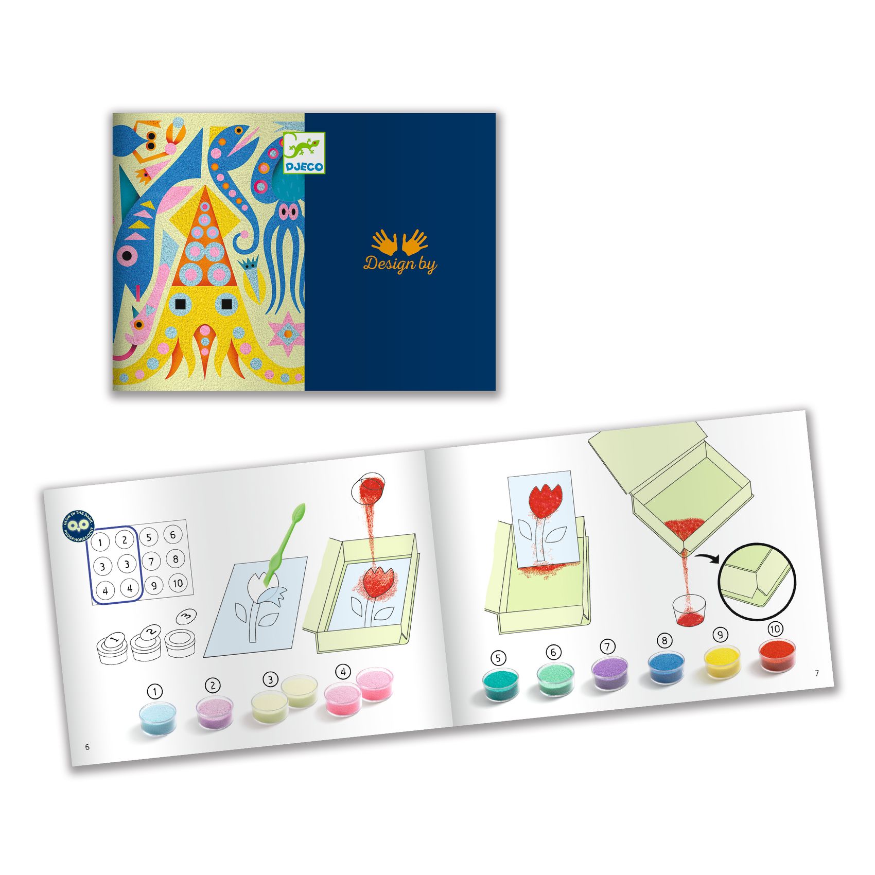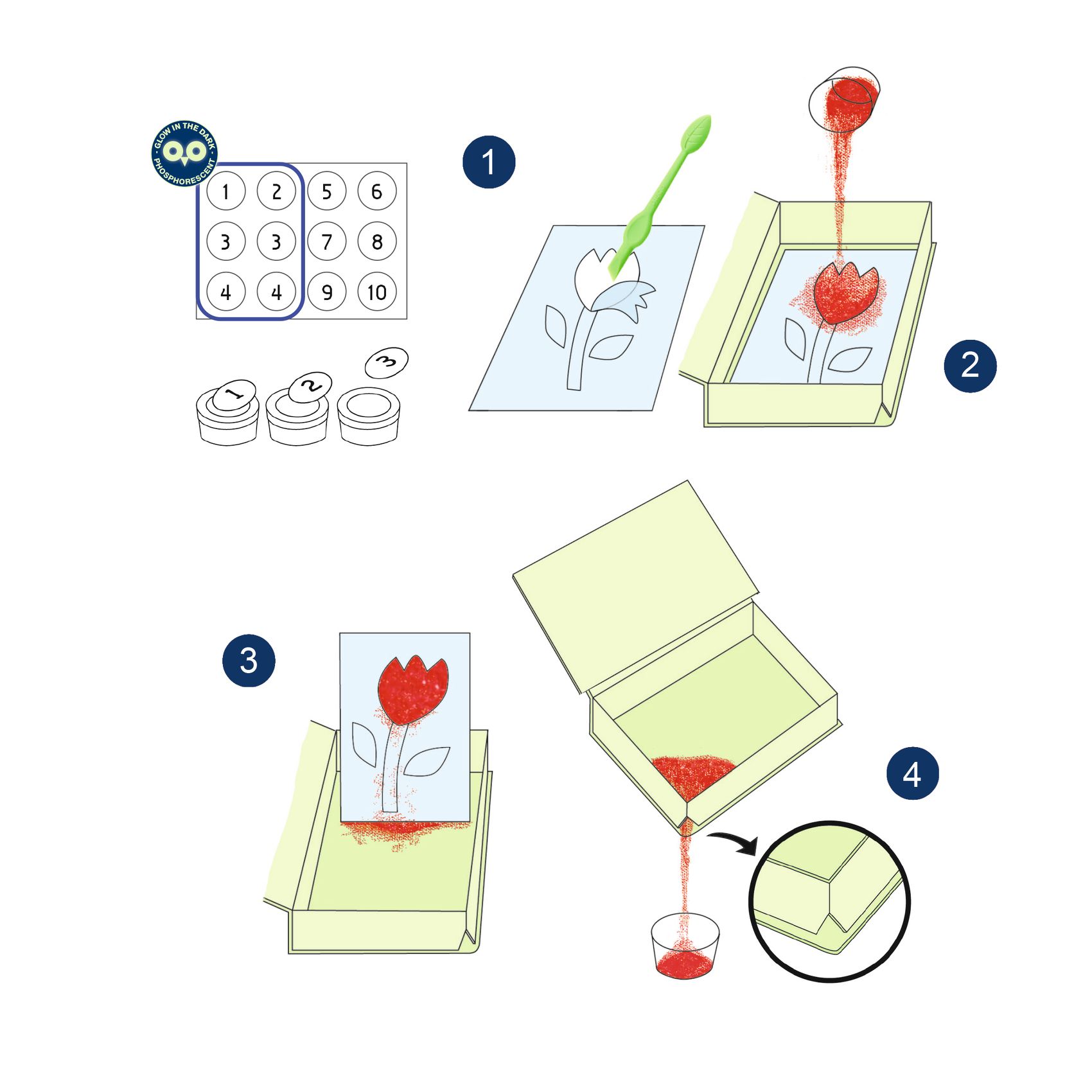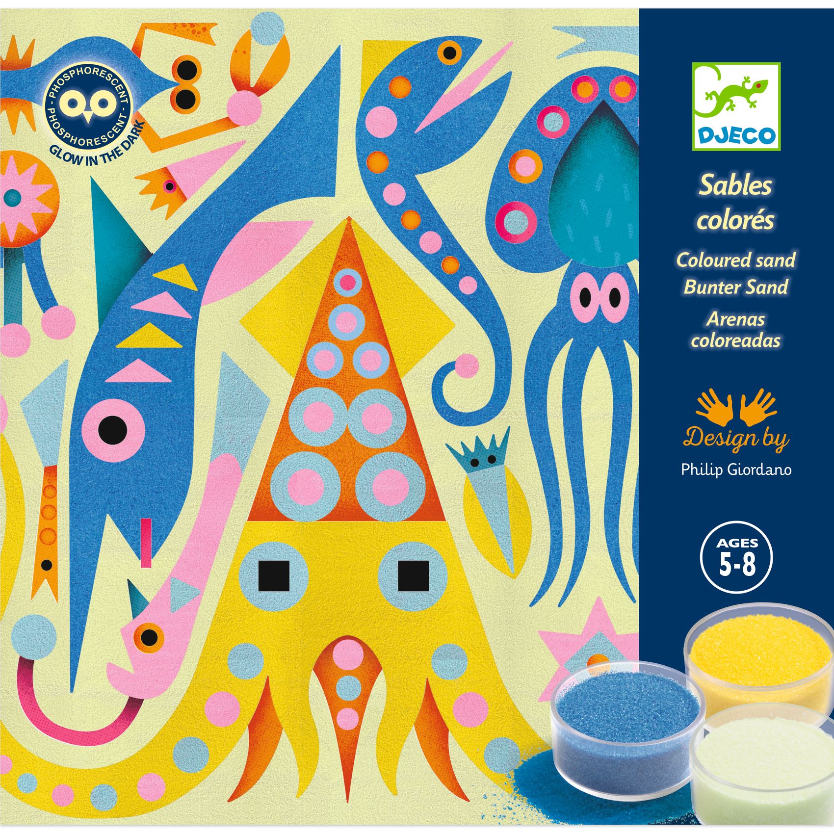 Homokkép készítő készlet foszforeszkáló homokkal.