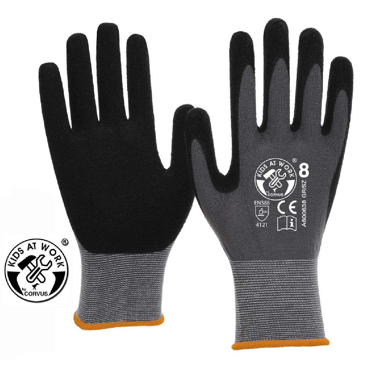 A tenyéroldalon csúszásgátló anyaggal mártott munkakesztyű.