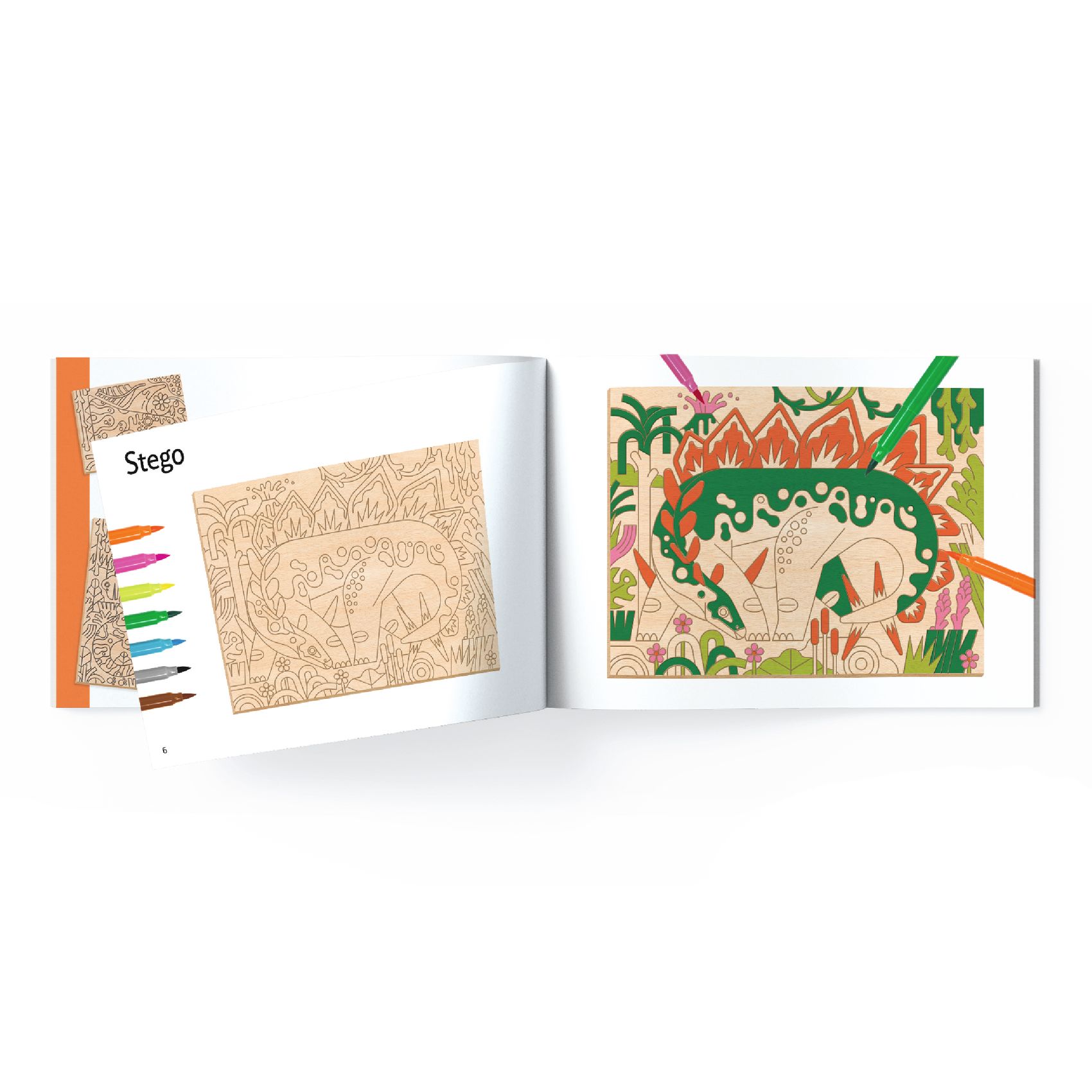 Fa alapra színezés, eredeti elgondolás alapján. Eredeti színező tevékenység fa paneleken. A filctollakkal felfegyverkezve a gyerekek lépésről lépésre követik a művész utasításait a költői illusztrációk színezéséhez. Praktikus, mert a fába húzott barázdák vezetik a tintát és megakadályozzák a színek keveredését!
