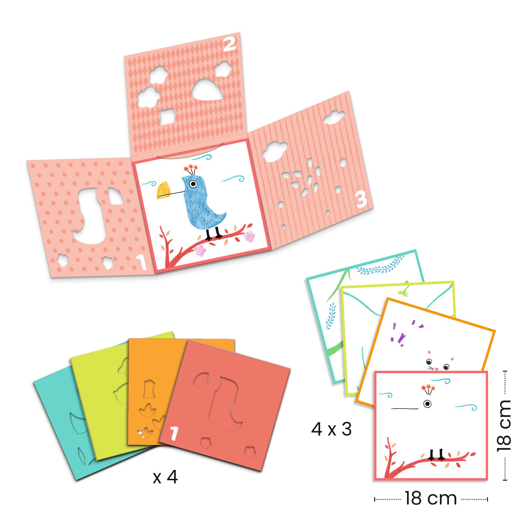 4 állatos sablonkészlet: állatokat és kiegészítő motívumokat tartalmazó leporellós rajzsablonnal.