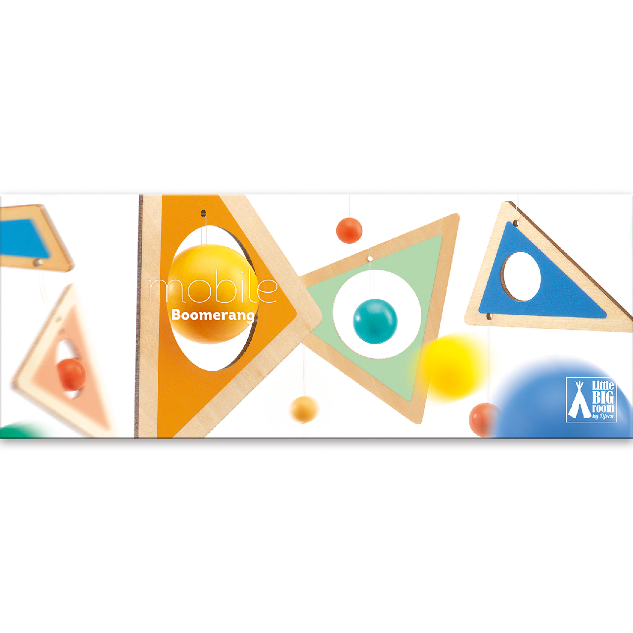 Előre összeszerelt szín és forma kavalkád, fa elemekből lévő függődísz, szélmobil a Djecotól.
