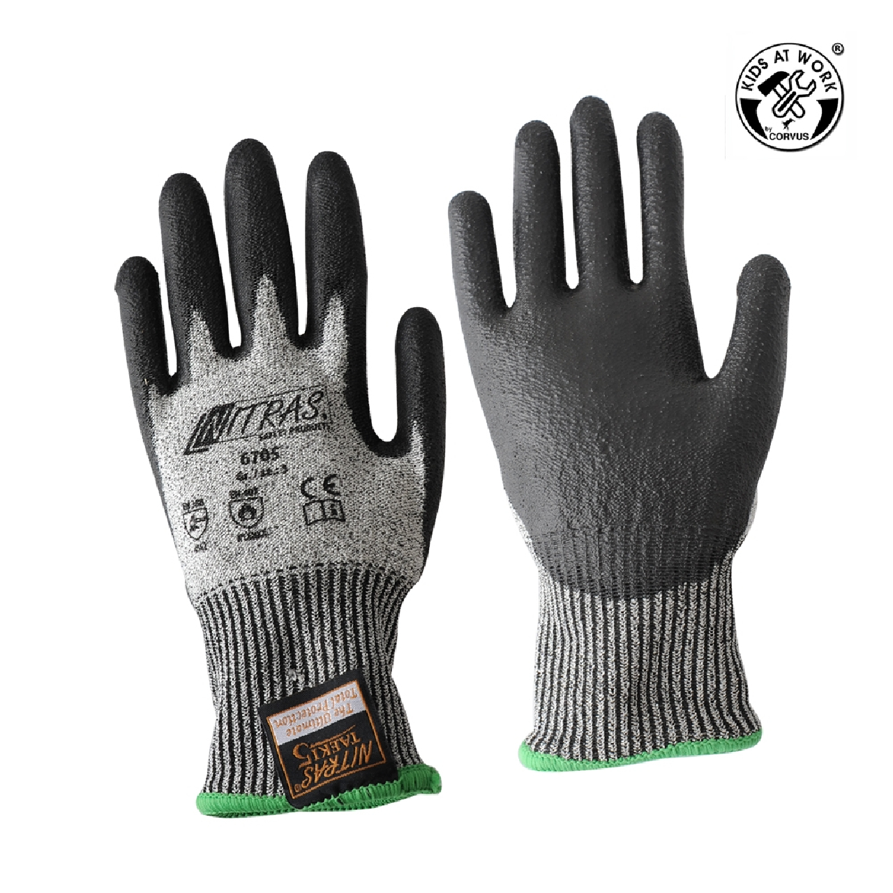A vágásbiztos kesztyű fokozott védelmet nyújt a veszélyesebb munkafolyamatok, vágások, fűrészelések, faragások alatt. Erős kopásállóság, szúrás, szakítás elleni védelem jellemzi. A mártott tenyérrész jó fogást biztosít, csúszásgátló funkcióval.